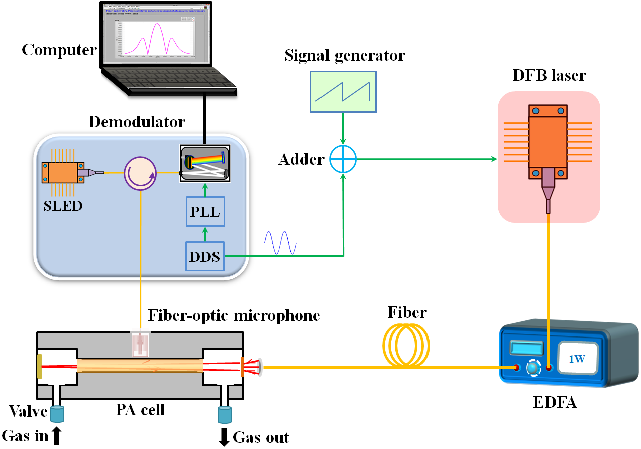 图1 基于光纤声波传感器的高灵敏激光光声光谱系统结构