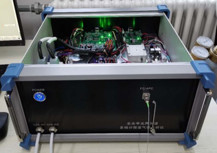 研制了世界上首台基于光纤声波传感的全光学光声光谱多组分气体分析仪,用于温室气体、有毒有害等环境气体检测。