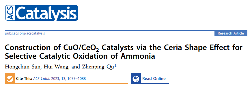 研究团队在ACS Catalysis上报道基于二氧化铈形貌效应的CuO-CeO₂界面调控策略促进氨选择性催化氧化
