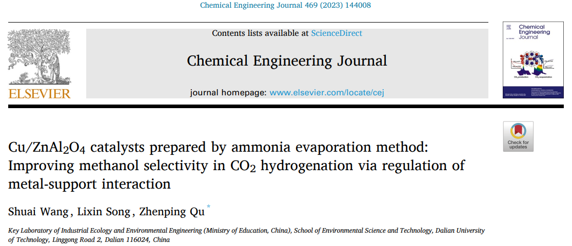 研究团队在Chemical Engineering Journal上报道蒸氨法调控铜/锌铝尖晶石金属载体相互作用以提高CO₂加氢制甲醇选择性