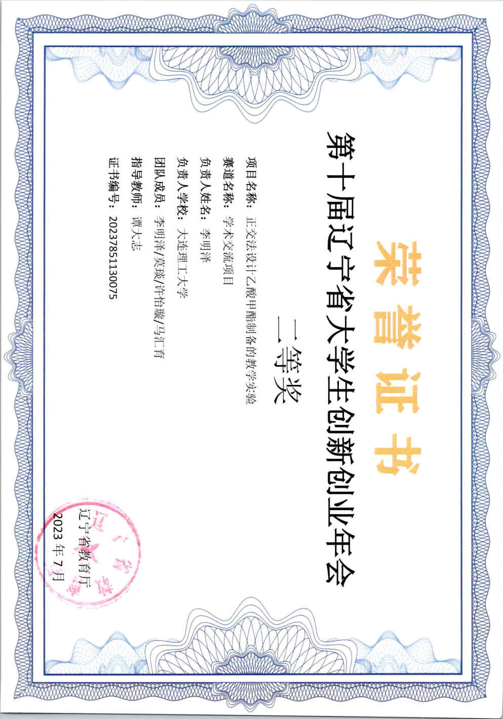204 学生获奖创新年会二等奖 2023年