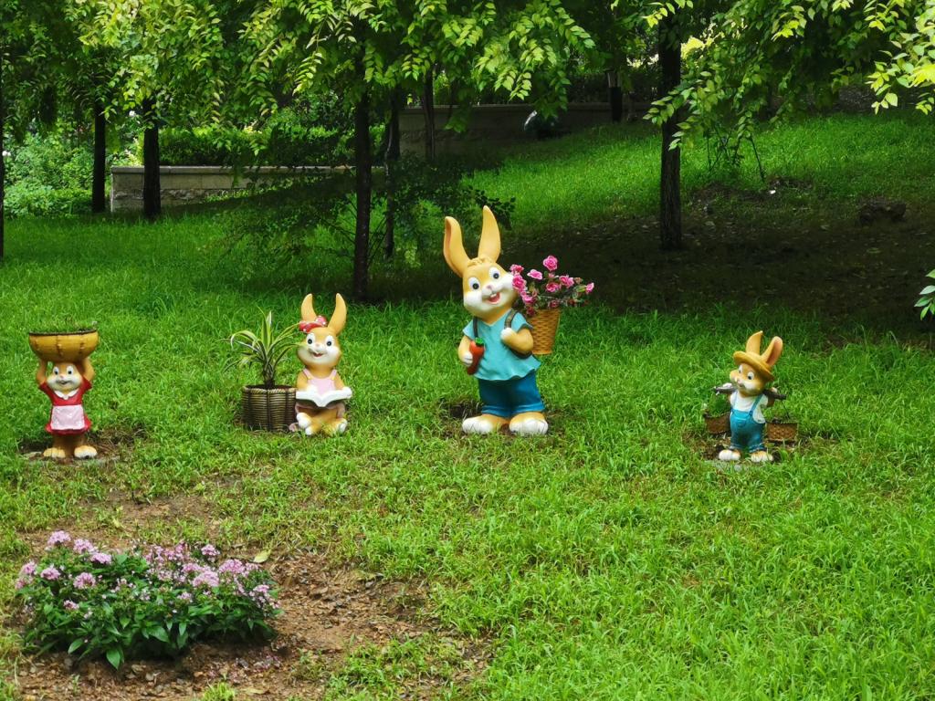 有一天雨后,在小区园中拍到一张照片,几只小白兔在欢欢喜喜地劳作。虽是为了给小孩子看的,但我也感受到了小白兔不以为苦,乐在其中的快乐。新学期开学了,要像小白兔一样,仍然专注本份,乐在其中。