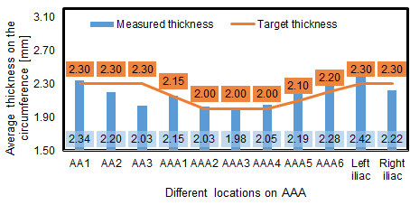 腹主动脉瘤模型厚度测量值