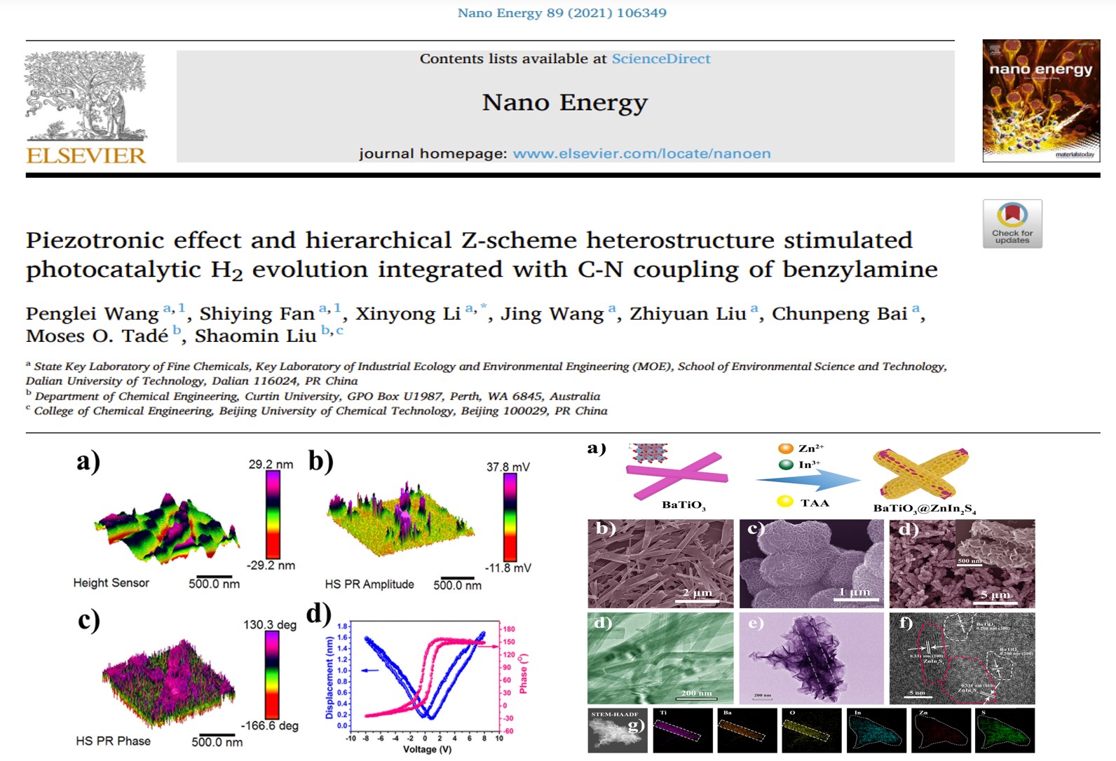 大连理工大学李新勇课题组Nano Energy: 压电效应协同Z型异质结促进光催化苯甲胺C-N耦联并同时产氢