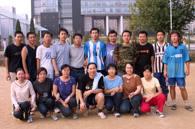 与同学们踢足球合影留念