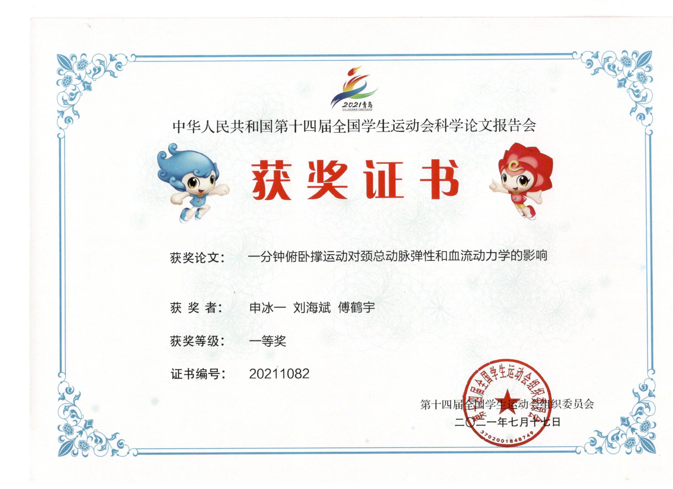 2021-07-17 第十四届全国学生运动会科学论文报告会 一等奖