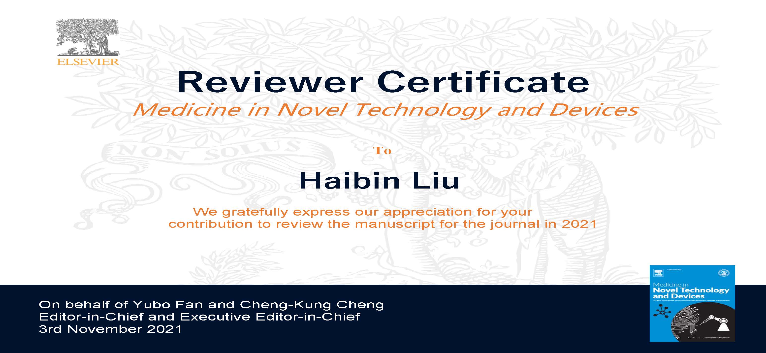 2021 Reviewer Certificate