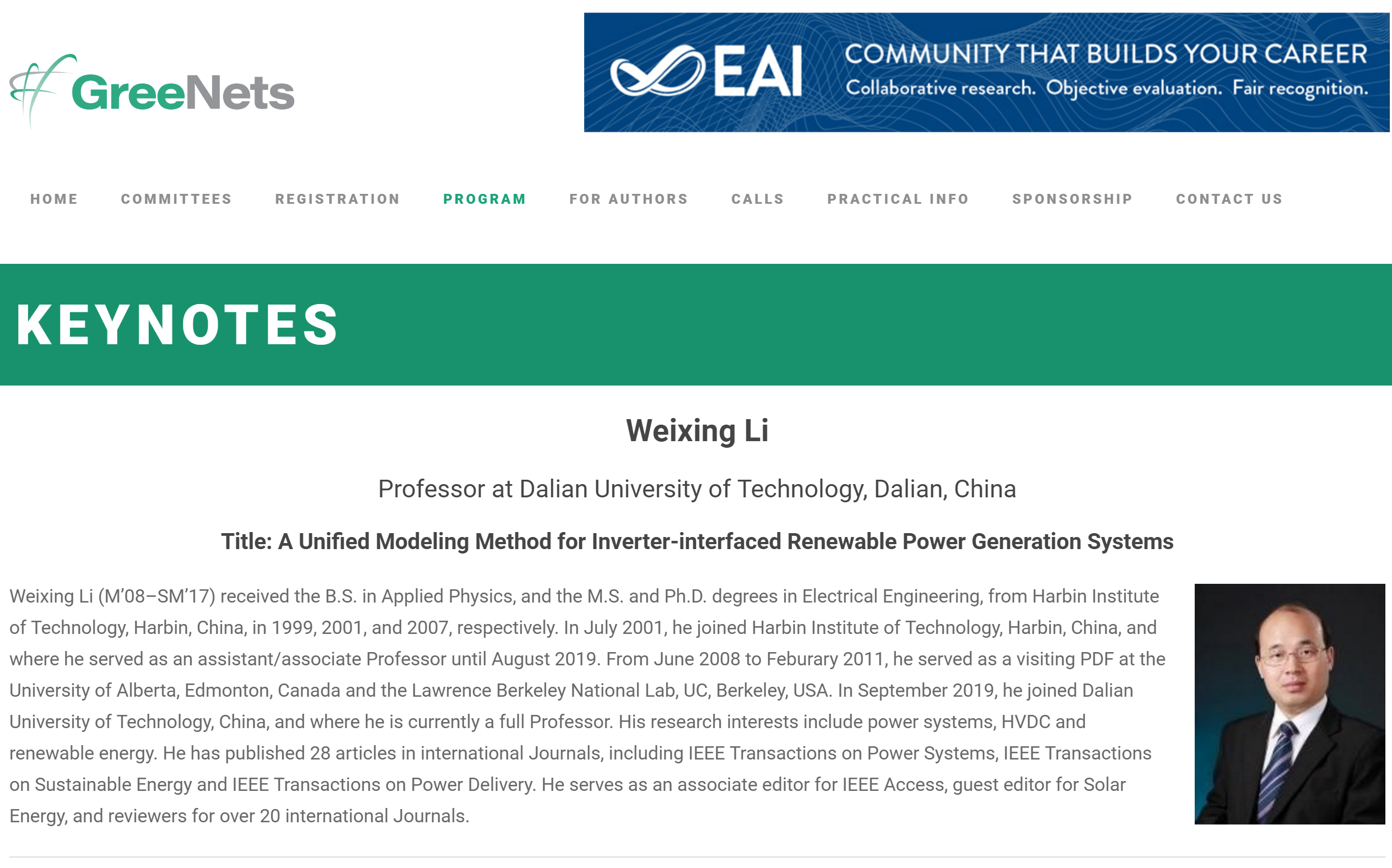 Keynote Speeker for 7th EAI International Conference on Green Energy and Networking