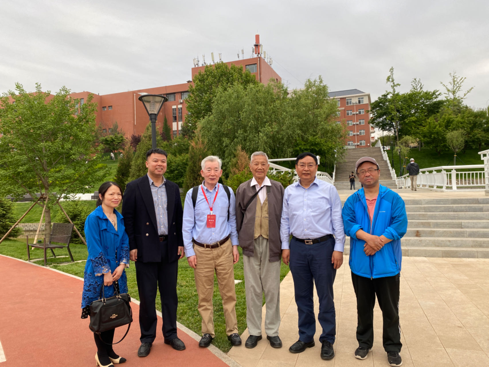 与杰出校友原《光明日报》副总编辑鲁谆老先生和曾任中国石化国际事业公司董事长兼总经理杨树杉先生,膜知名学者杨维慎教授合影