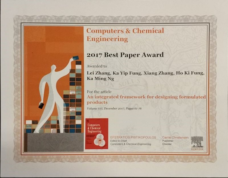 Zhang, L.*, Fung, K. Y., Zhang, X., Fung, H. K., & Ng, K. M. (2017). An integrated framework for designing formulated products. Computers & Chemical Engineering, 107, 61-76. (doi: 10.1016/j.compchemeng.2017.05.014)