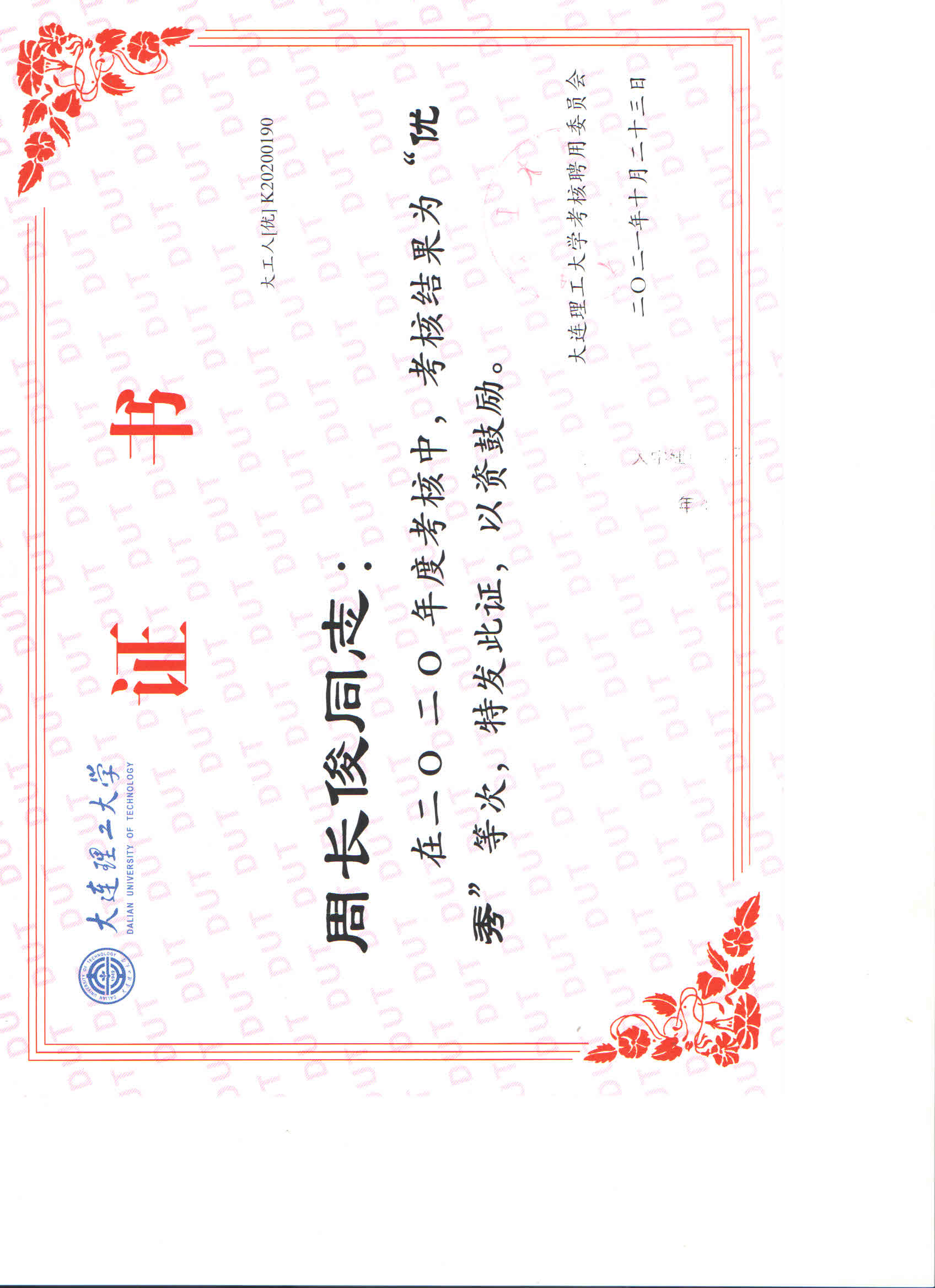 2020年度校考核优秀